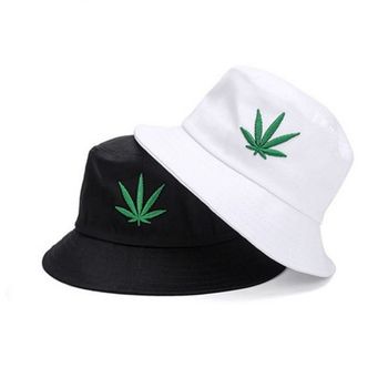 หมวกบักเก็ตผ้าฝ้ายใบไม้แบบอเมริกันฮิปฮอป