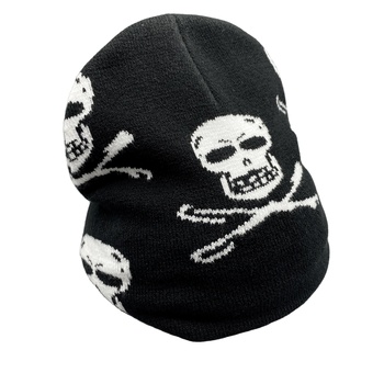 Halloween Skull Crossbones Beanie sombreros para Mujeres Hombres divertido invierno cálido acogedor elástico de punto con puños esqueleto gorra
